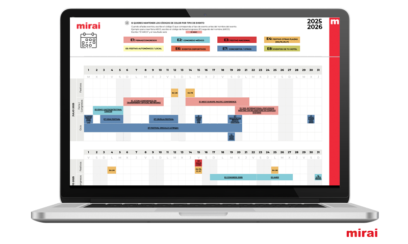 Nuestro Calendario de Demanda te ayuda a no perder de vista los eventos más importantes de tu ciudad: ferias, congresos, competiciones deportivas, citas de ocio y festivos locales, nacionales y de los principales mercados emisores.